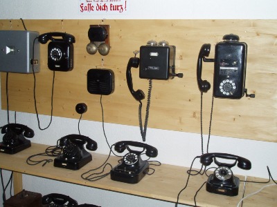 Hier ein Ausschnitt aus meiner Sammlung. Ältere Wandapparate mit Ortsbatterie-bzw. mit Wählbetrieb.Manche
